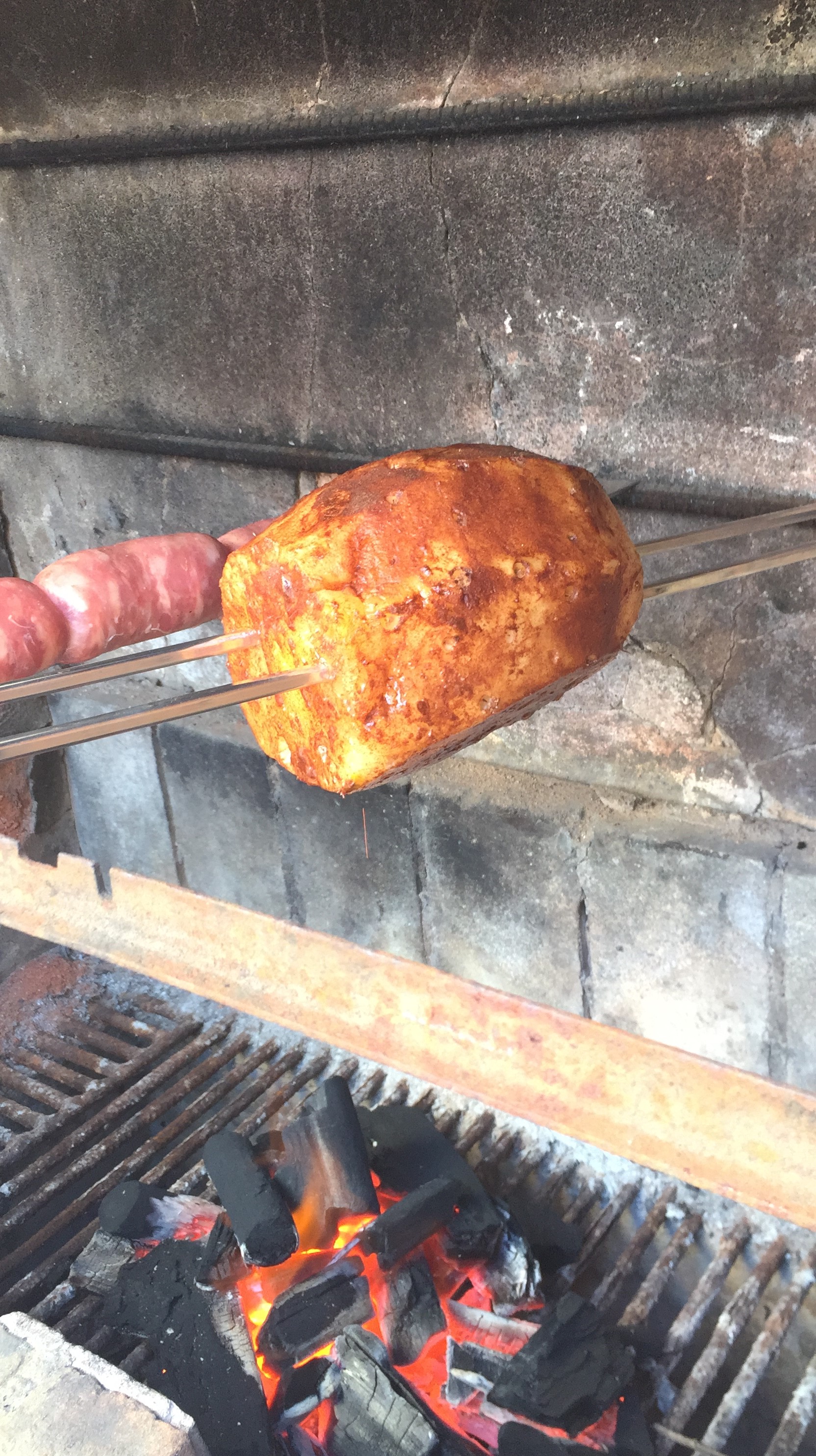 Note: In Brazil, most grills (churrasqueiras) don’t have a grate. Instead, you stick everything on giant skewers that are roughly the size of a sword. We skewer the pineapple through the center since that’s what we have. You can also cook the pineapple on a rotisserie or directly on the grate. Just make sure to turn it every so often if it’s on a grate
