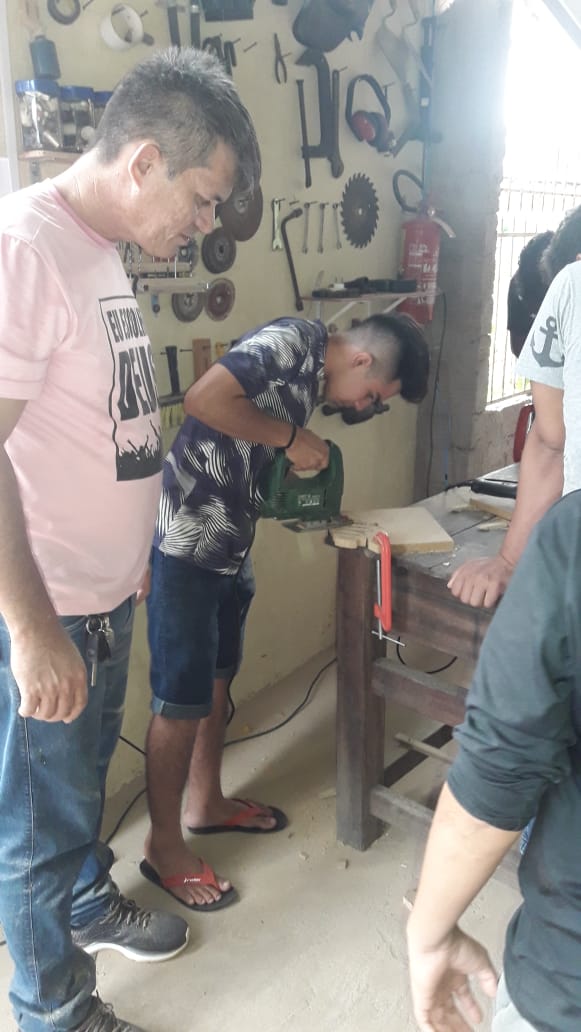 The congregation in Belterra is reaching out into the community in a variety of ways. At the beginning of October, Pastor Edney began a social program called “Primeiras Marteladas” where he can share with members of the community skills he learned from his time in A Mão Cooperadora, which is the name of the social outreach programs of the Church of God in Brazil. Some of the skills being taught include mechanics, electrical work, plumbing, carpentry, and joinery. While Pastor Edney is teaching shop skills, his wife, Pastor Maria is teaching culinary arts to a group of girls. The programs are held every Saturday at 16:00 and include a devotion, preaching, teaching theory behind the skills, practice at those skills, a snack, and recreation.